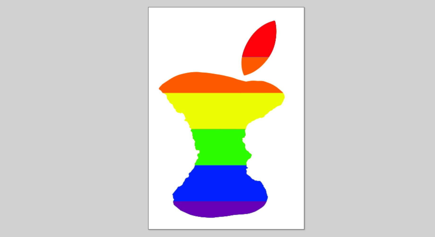 This is why my version of Rotten Apple contains the traditional gay flag colors, only I’ve attempted to pollute the colors by adding green to them making them a sickly color. It is rotten after all.